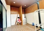 ชั้น 3 เป็นห้องนอนใหญ่ แบ่งกั้นห้องด้วยประตูกระจกสามารถทำเป็นห้องแต่งตัวหรือห้องนอนเล็กแยกอีกได้ มีเตียง+ที่นอน โซฟา ทีวี 65″ แอร์ 1 ตัว