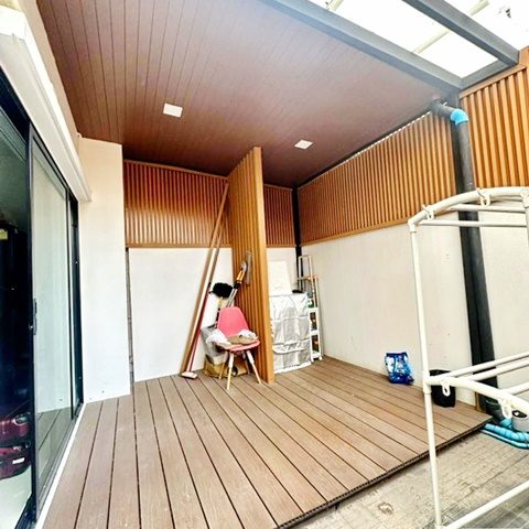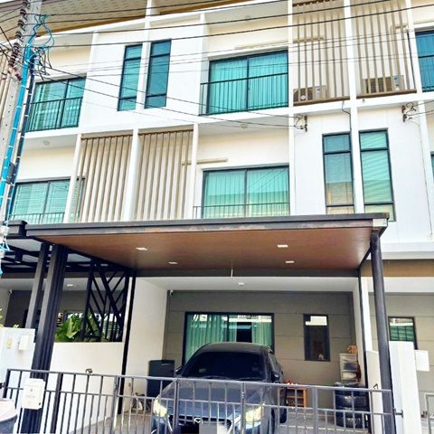 Patio Srinakarin-Rama9 Townhome for rent 3 floors MRT Srikreetha not hot house 19sq.wa. 148sq.m. Thanya Shopping Park front of the house facing southeast 3bed 3bath 2parking 4A/C convenient travel.