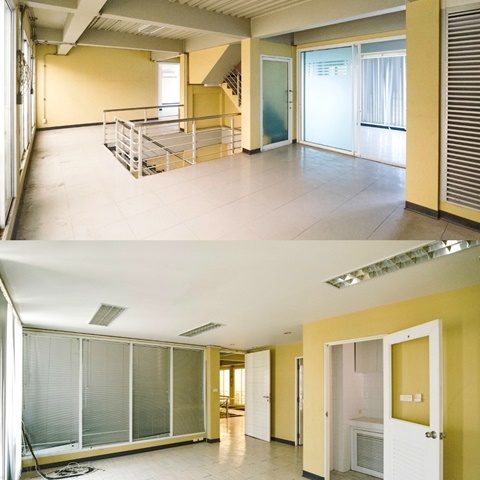 – ชั้น1 มีพื้นที่กว้าง 3 ห้องอาคาร – มี 1 ห้องทำงานที่กั้นแล้ว 1 พื้นที่ส่วนกลางขนาดใหญ่ 2 ห้องน้ำ