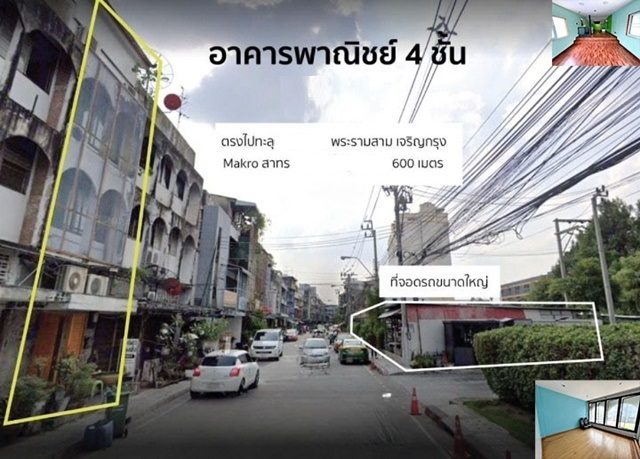 Silom 4-story commercial building for rent prime location BTS Chong Nonsi 1km. 16sq.wa. 225sq.m. 54,998B-M can register a company busy area 5bed 2bath has parking space Suan Phlu Market.